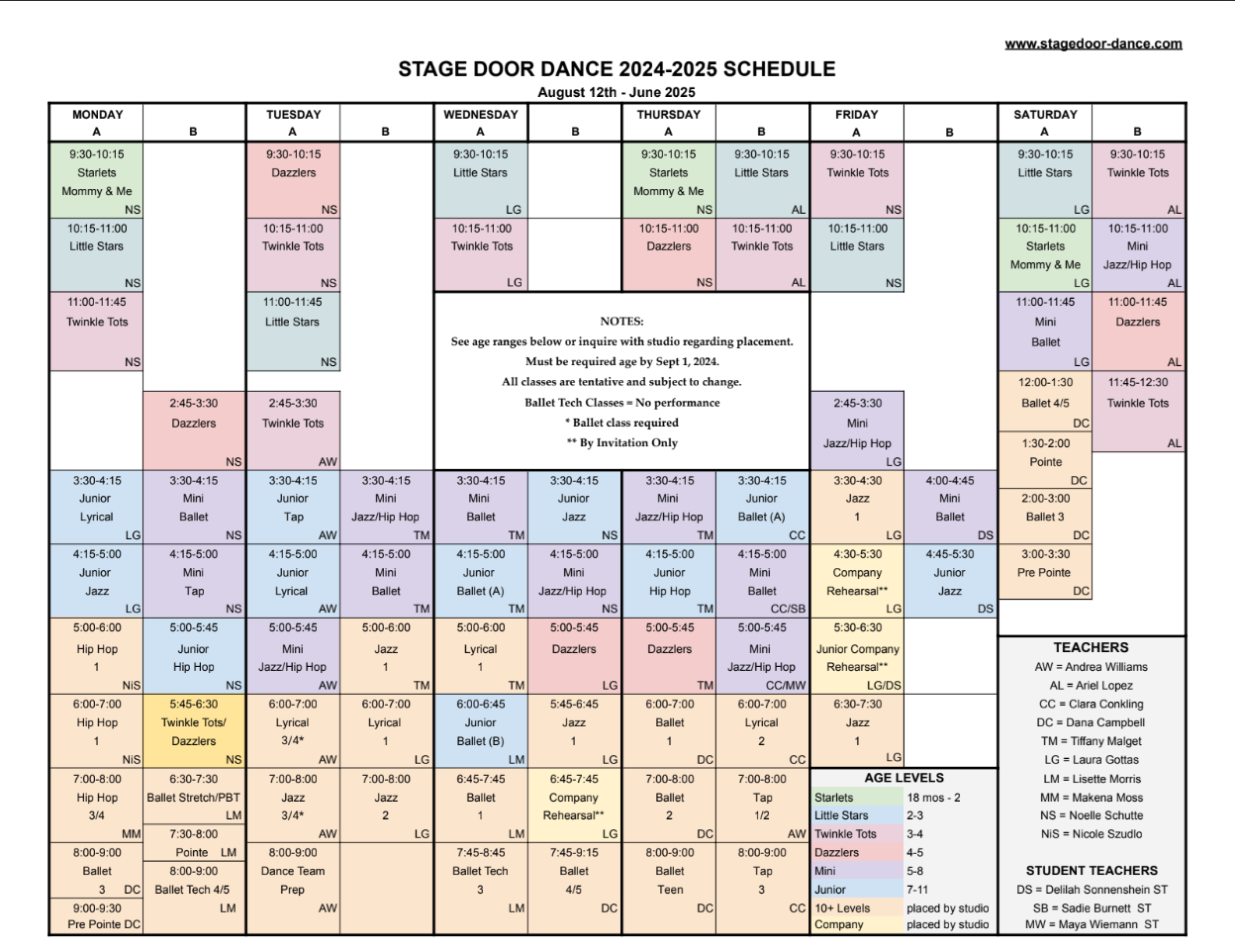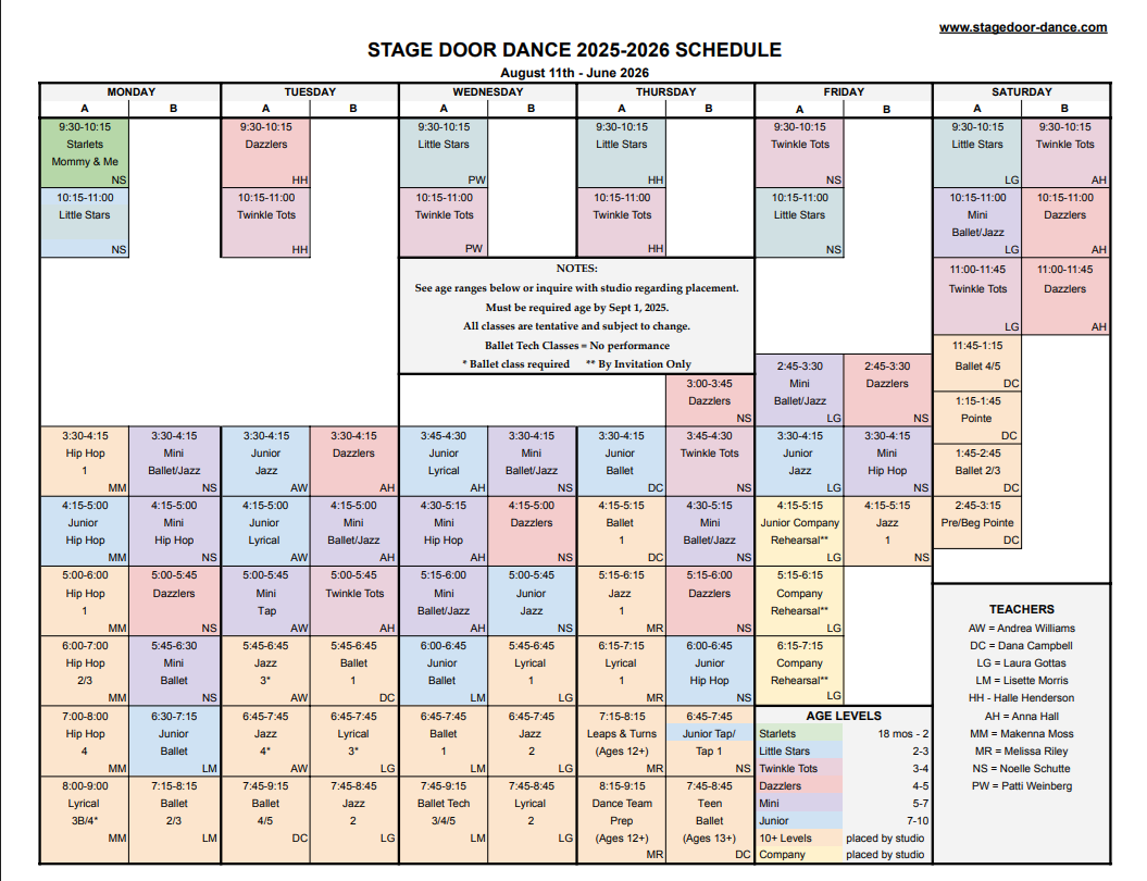 | Register | Stage Door Encore Co/Jazz Rehearsal Permission Required) | Fri | 6:00pm-6:45pm | 11 – 99 | 79.00 |